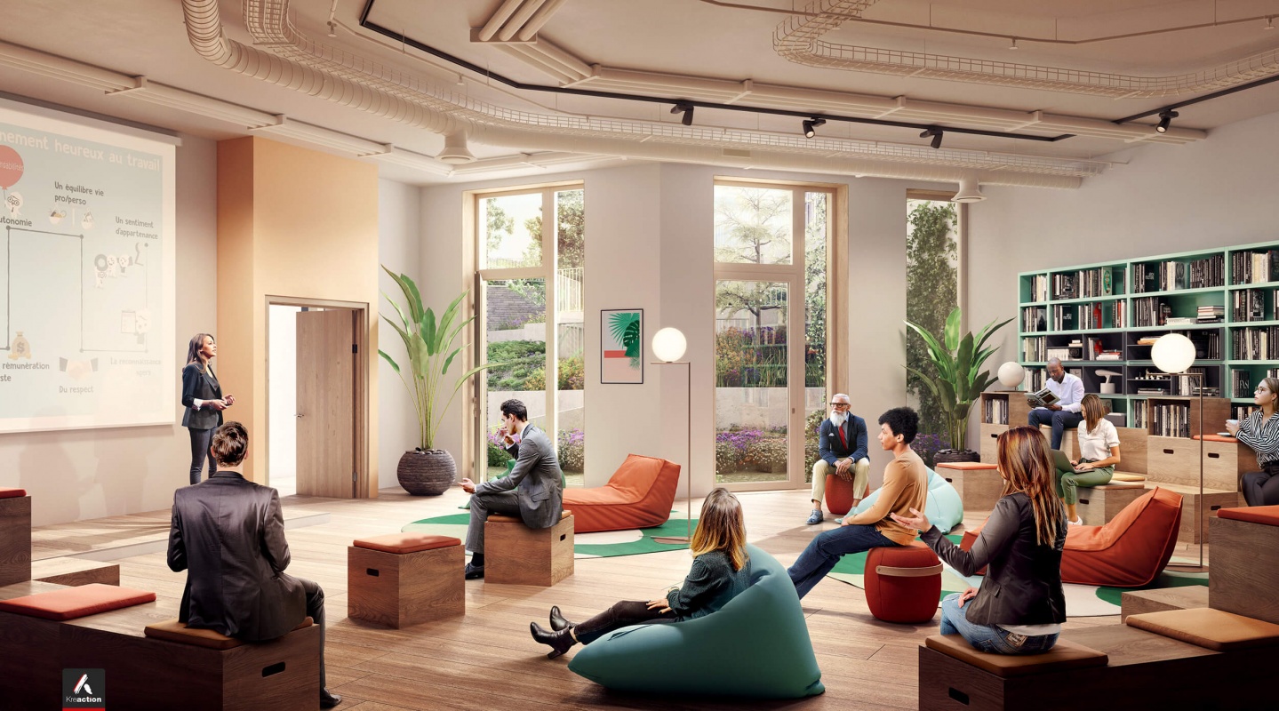 Réalisation de perspectives 3D intérieures + extérieures et d'un film d'animation 3D pour ce programme immobilier tertiaire implanté dans un environnement urbain mixte à Malakoff.